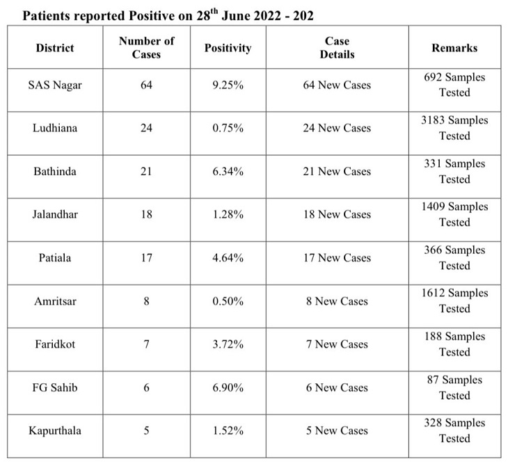In terms of corona, the situation in Ludhiana and Mohali remains worrisome. 64 patients were found in Mohali yesterday with a positivity rate of 9.25%. Whereas in Ludhiana, 24 new patients were found with the death of 1 patient. In Bathinda, 21 new patients were found with a positivity rate of 6.34%. 18 new patients were found in Jalandhar with a positivity rate of 1.28% and 17 in Patiala.